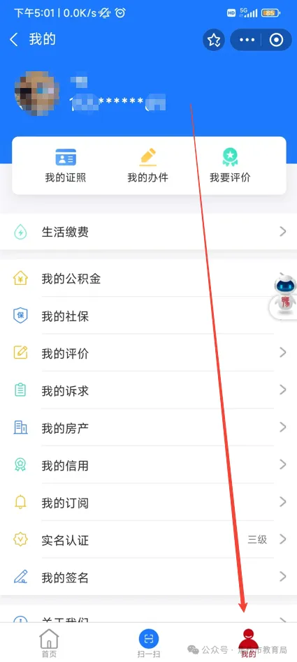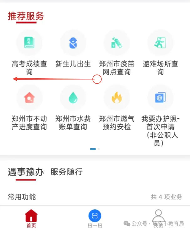 登录完成以后,在“推荐服务”下方中间位置,向左滑动。