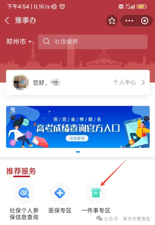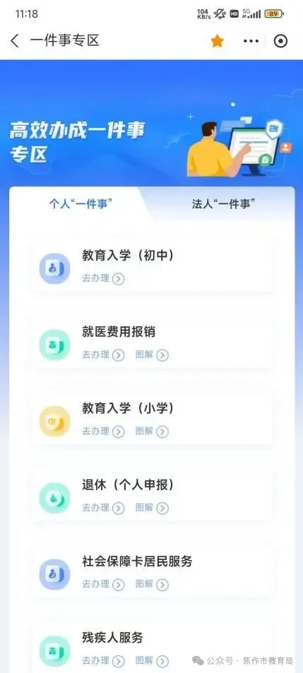 点击“个人一件事”;点击“教育入学(小学)”或“教育入学(初中)”。